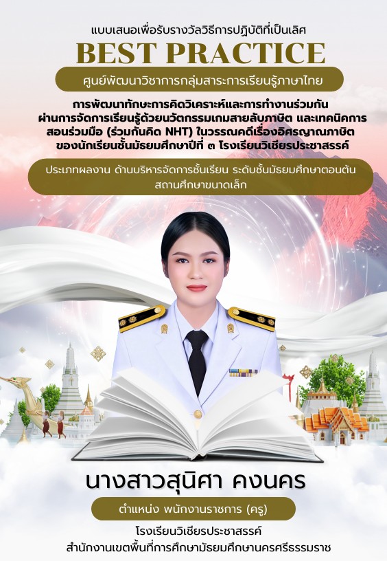 วิธีการปฏิบัติที่เป็นเลิศ (Best Practice) - กลุ่มสาระการเรียนรู้ภาษาไทย ประเภทข้าราชการครู ด้านบริหารจัดการชั้นเรียน