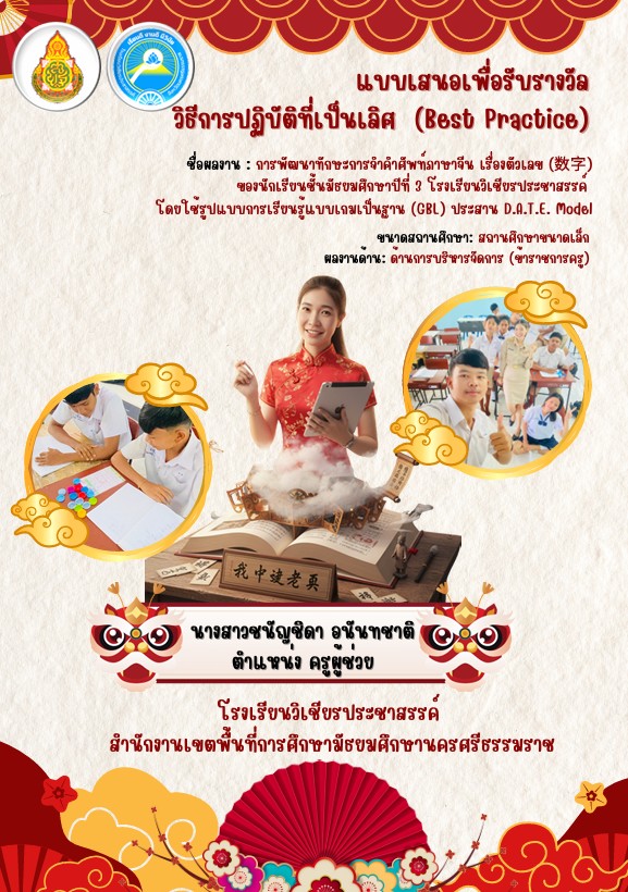 วิธีการปฏิบัติที่เป็นเลิศ (Best Practice) - กลุ่มสาระภาษาต่างประเทศ (ภาษาจีน) ประเภทข้าราชการครู ด้านการบริหารจัดการชั้นเรียน