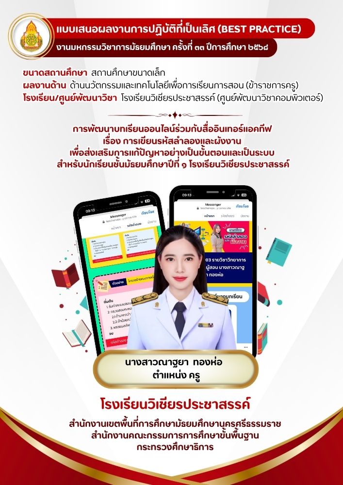 วิธีการปฏิบัติที่เป็นเลิศ (Best Practice) - สาขาเทคโนโลยี/สาขาคอมพิวเตอร์ ประเภทข้าราชการครู ด้านนวัตกรรมและเทคโนโลยีเพื่อการเรียนการสอน